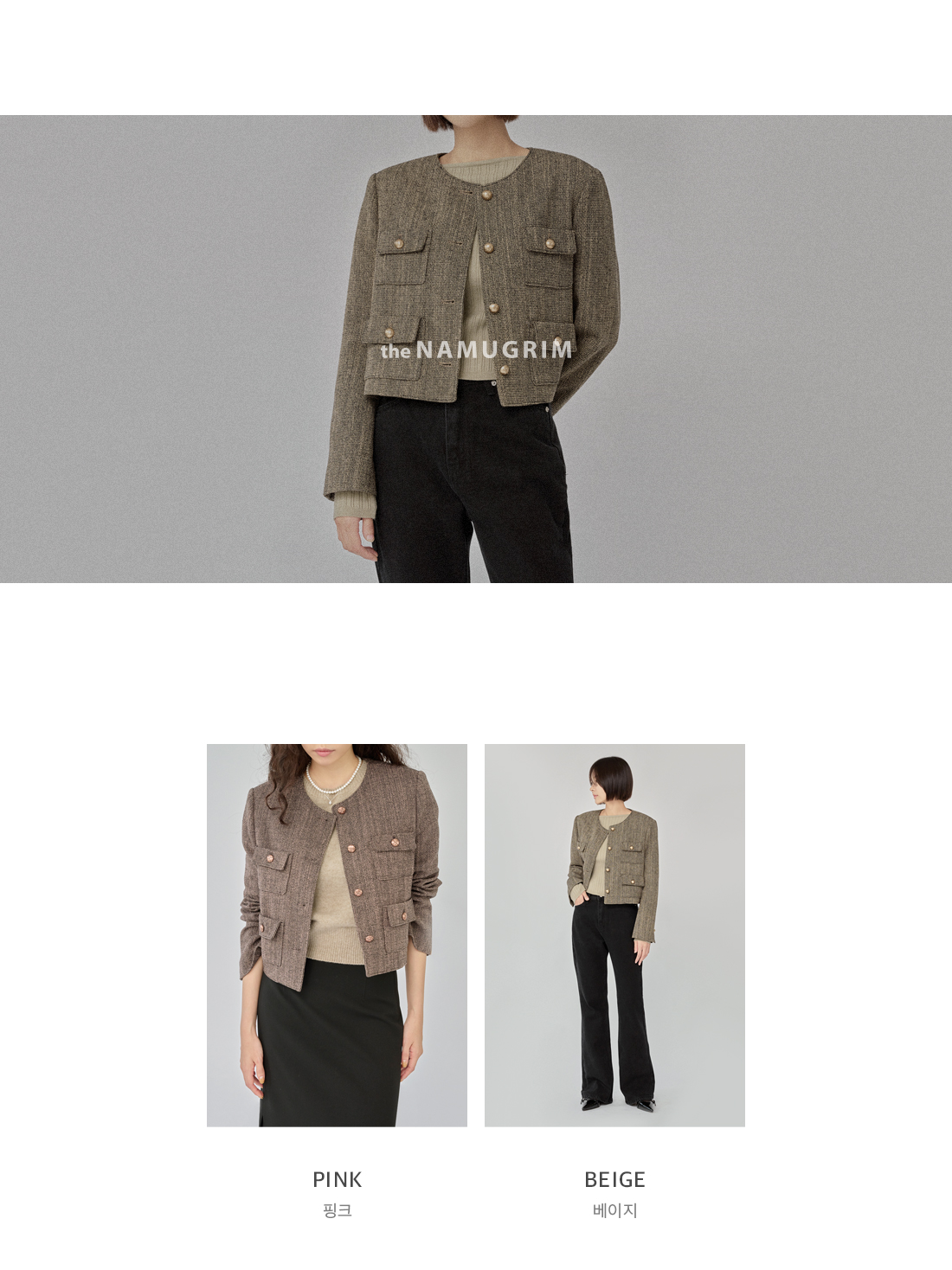 * 베이지 색상과 함께 착용한 블랙 팬츠, 신발 / 핑크 색상과 함께 착용한 신발은 촬영용 샘플입니다.