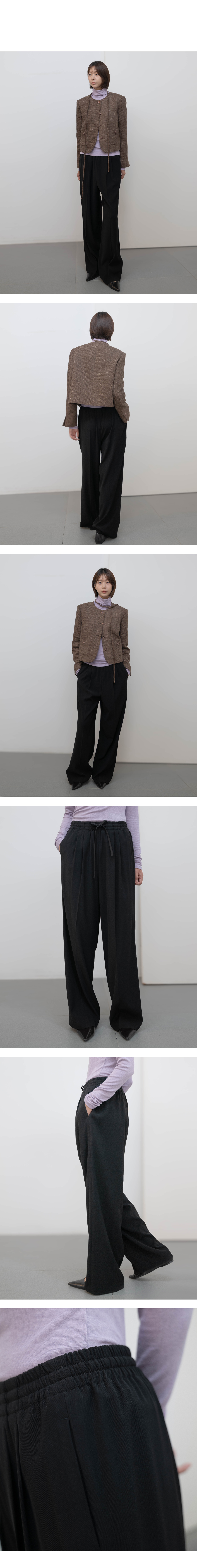 와이드하게 떨어지는 실루엣이 편안하면서도 세련된 분위기를 주고, 허리에 잡힌 핀턱이 입체적인 무드를 더해줍니다.