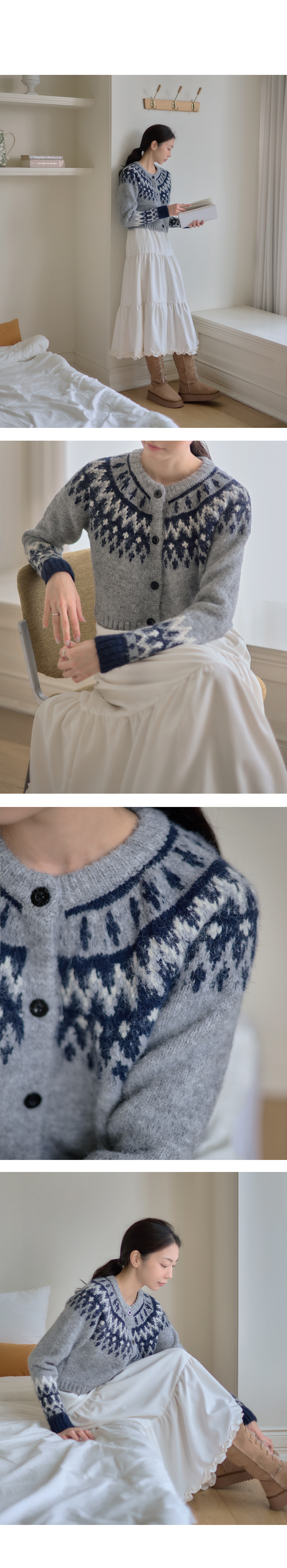 클래식한 노르딕 패턴 크롭 가디건.