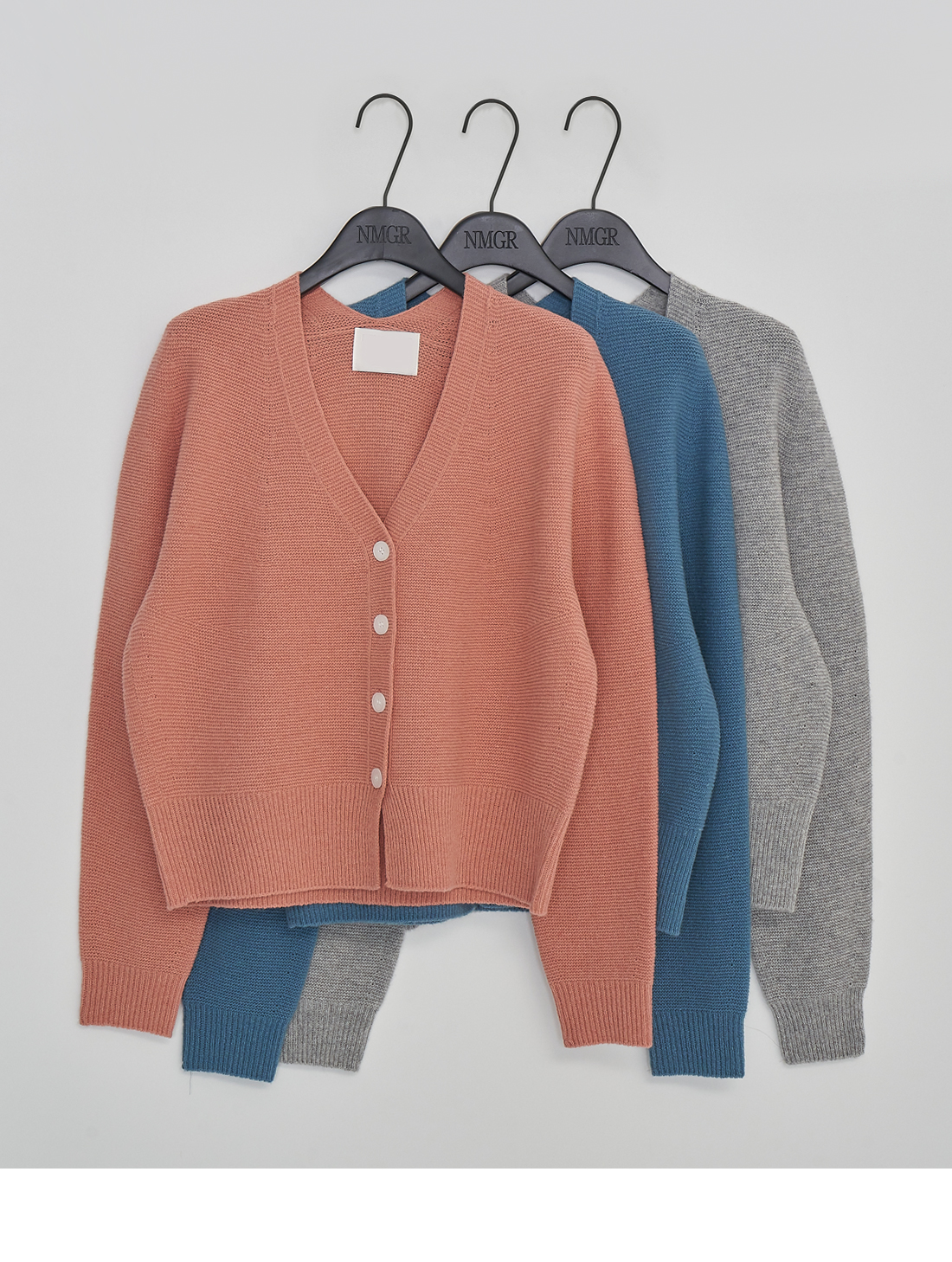 여유로운 실루엣의 브이넥 니트 가디건으로, 볼드한 버튼 디테일이 멋스럽습니다.