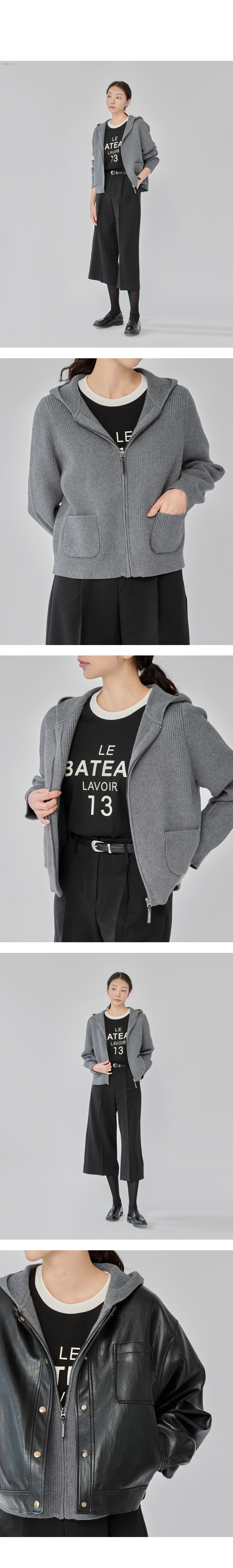 시각적으로 바디라인을 슬림하게 연출해주는 골지 짜임으로 완성되었으며 아웃포켓을 더해 포인트를 주었습니다.