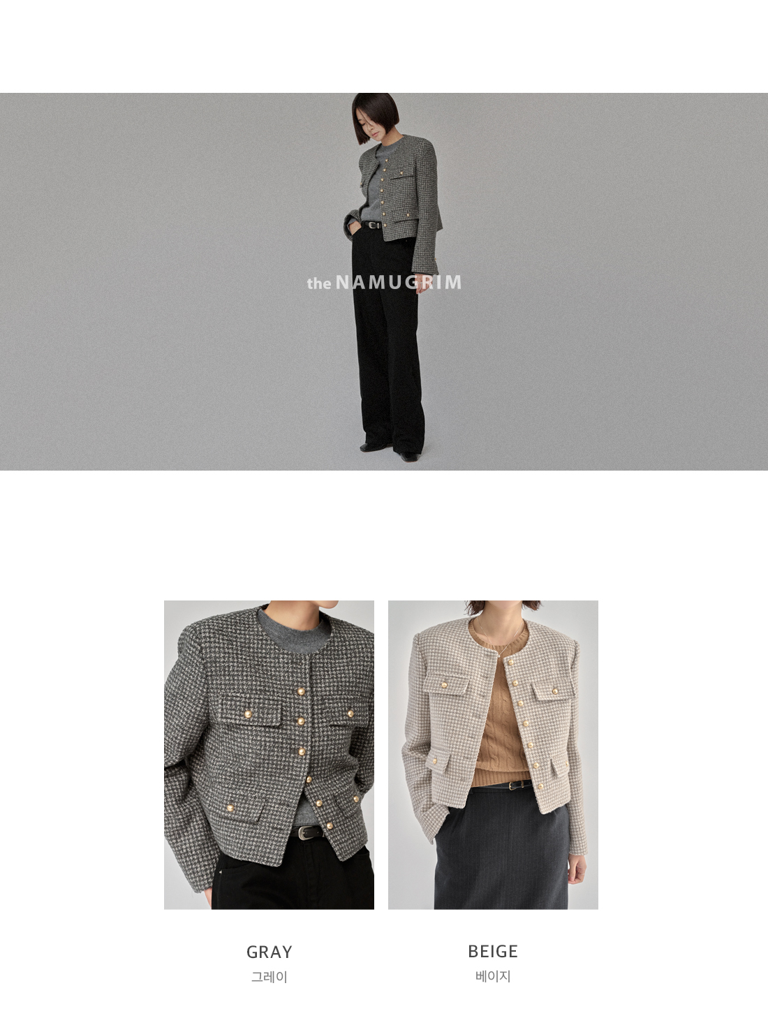 클래식하고 단정한 무드의 더나무그림 체크 자켓.