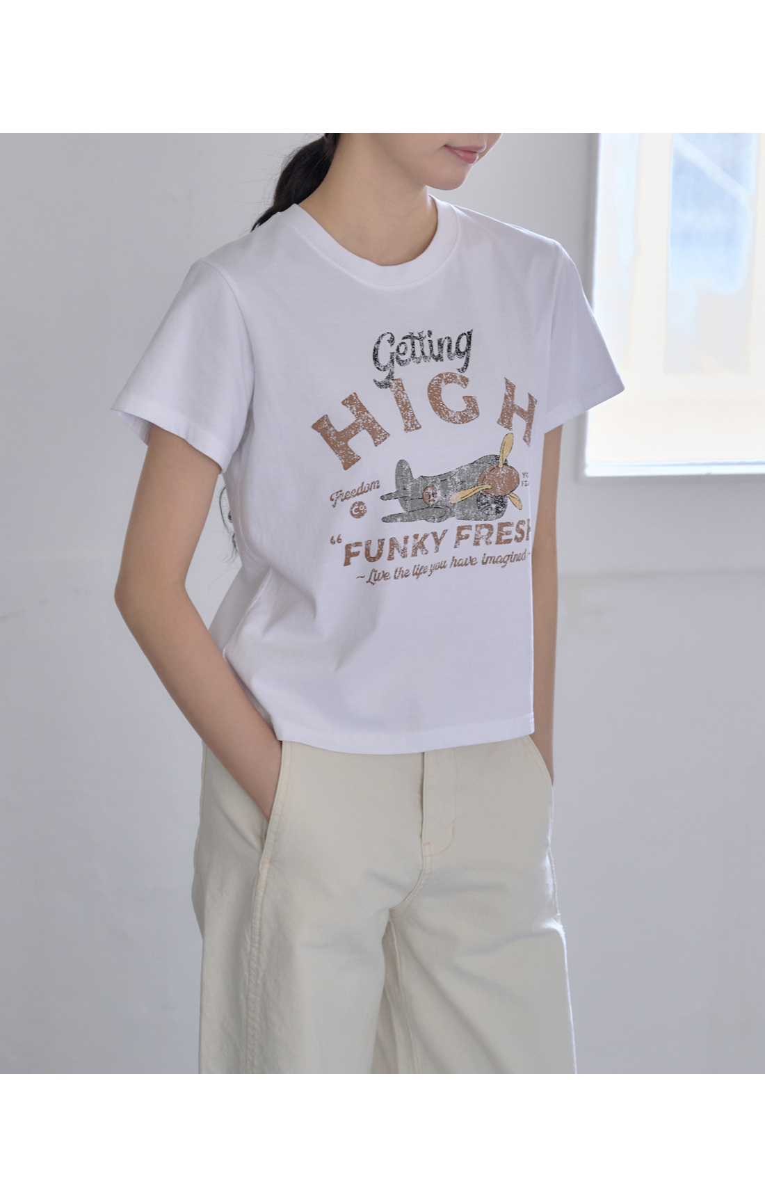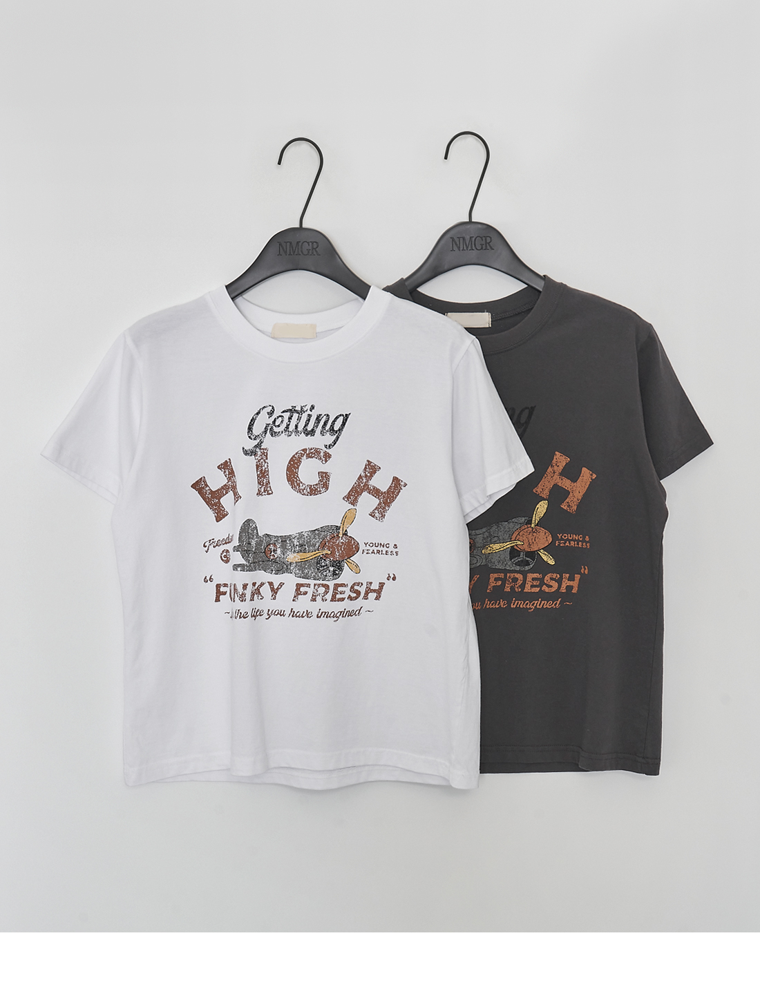 빈티지 무드가 느껴지는 프린팅 티셔츠.