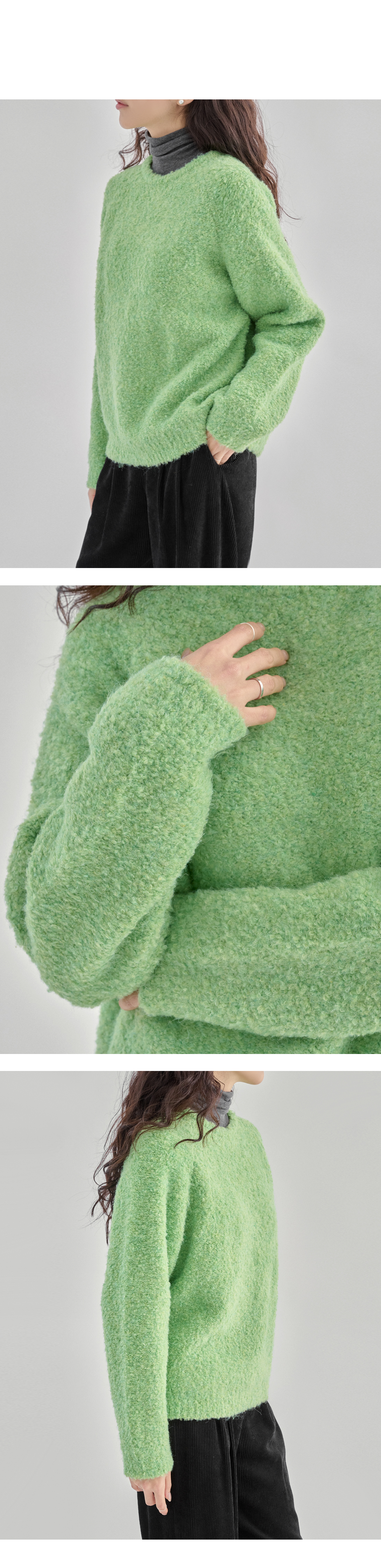 베이직한 디자인의 부클 니트.