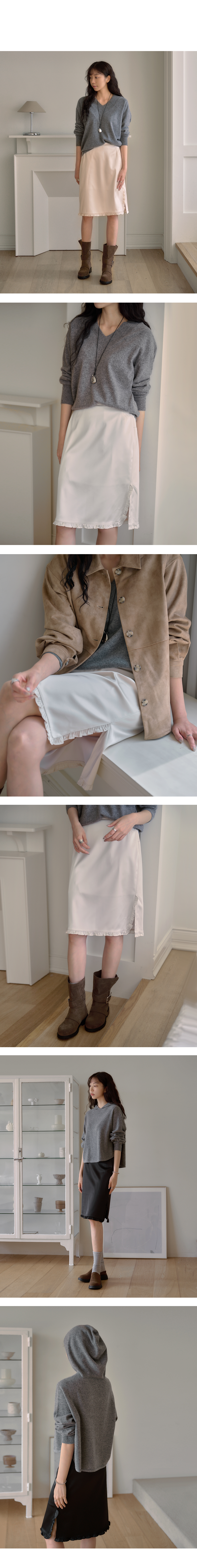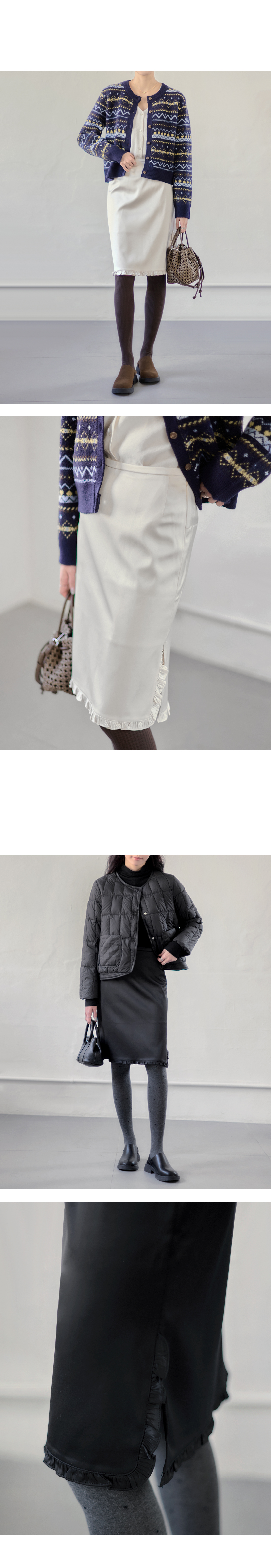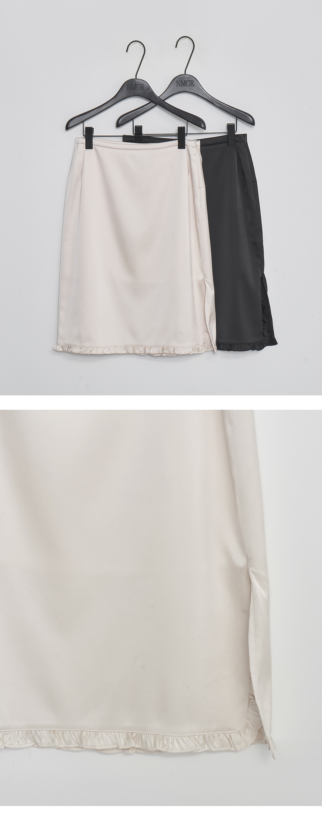 사이드에 트임과 프릴 디테일을 더해 여성스럽고 우아한 무드를 완성했습니다.