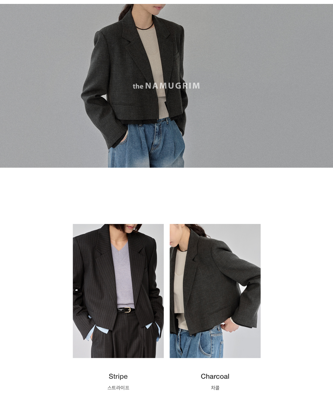 | 소재 | 차콜 - 겉감 : 폴리에스테르 88% 레이온 8% 울 4% / 배색 : 면 100% 안감 : 폴리에스테르 100% 스트라이프 - 겉감 : 폴리에스테르 75% 레이온 25% / 배색 : 면 100% 안감 : 폴리에스테르 100% |