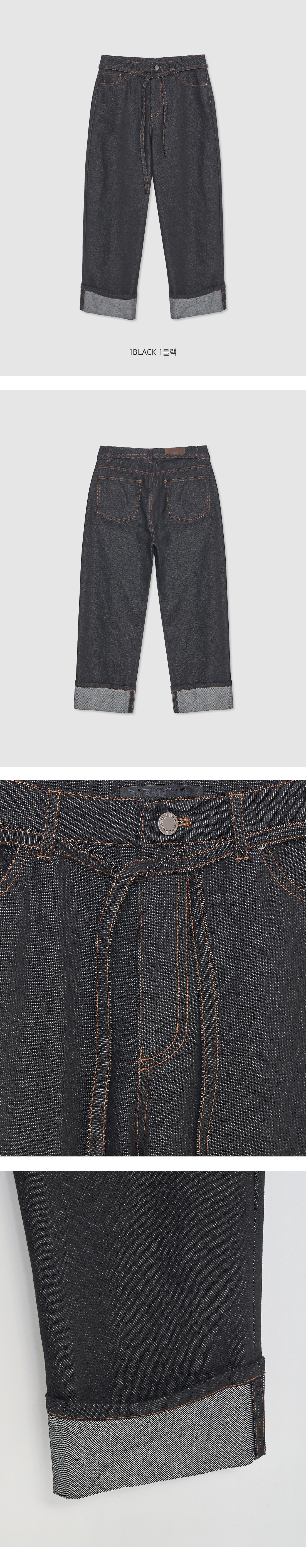 밑단을 넓게 롤업하면 안쪽의 배색 원단이 자연스럽게 드러나 포인트가 됩니다.
