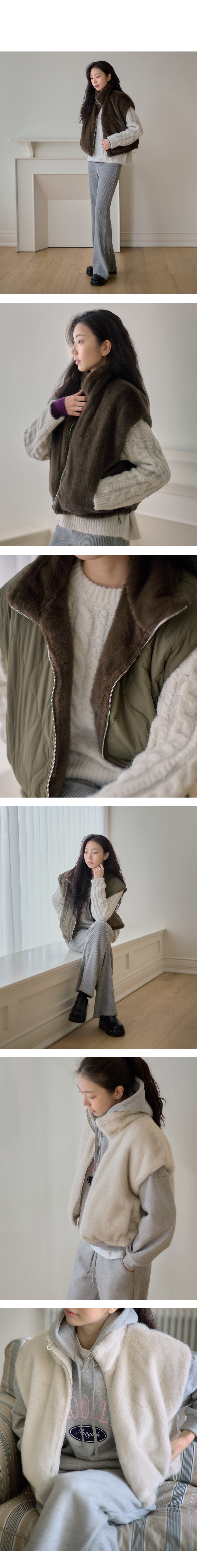 한 쪽 면은 퍼, 한 쪽 면은 사각거리는 소재로 제작된 리버시블 아이템입니다.