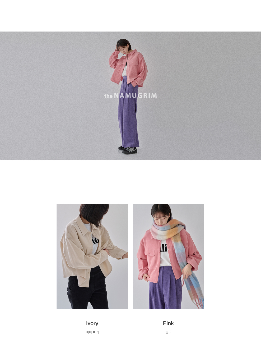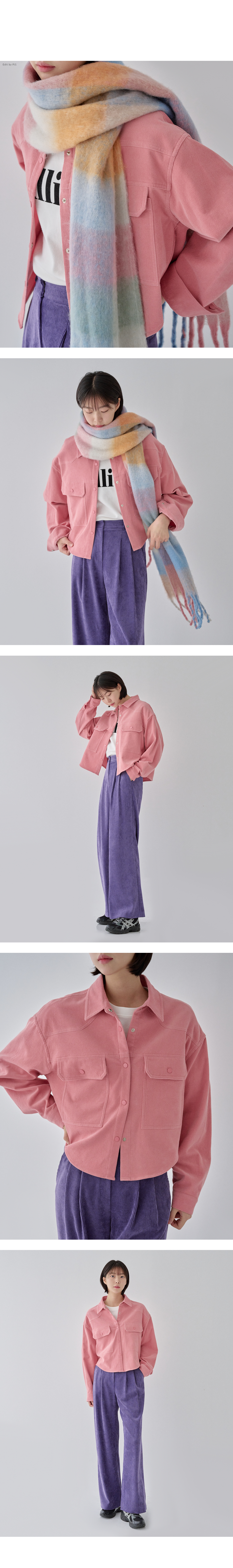 • 코듀로이 소재 / 스냅단추 클로징 / 프론트 포켓 / 드롭숄더 / 세미 크롭 기장 / 카라 디자인