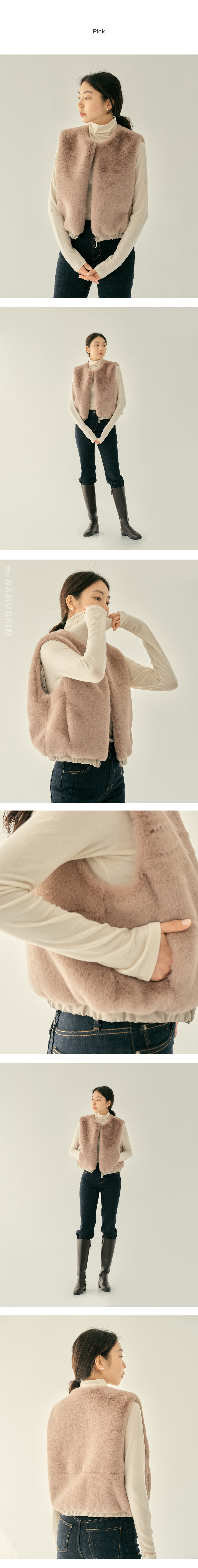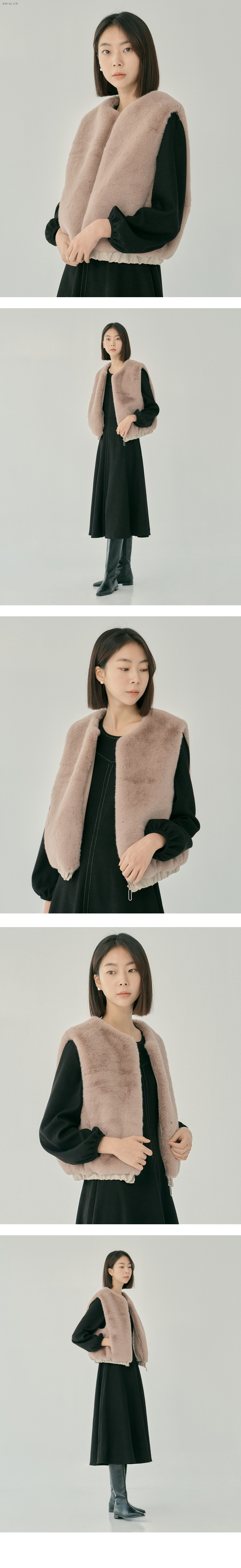 포근한 텍스쳐로 이루어진 인조 퍼 베스트.