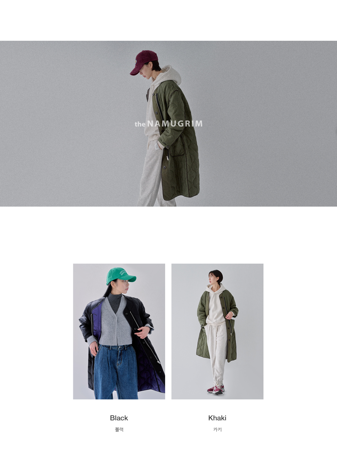 드롭 숄더 형태의 더나무그림 오버핏 퀄팅 패딩.