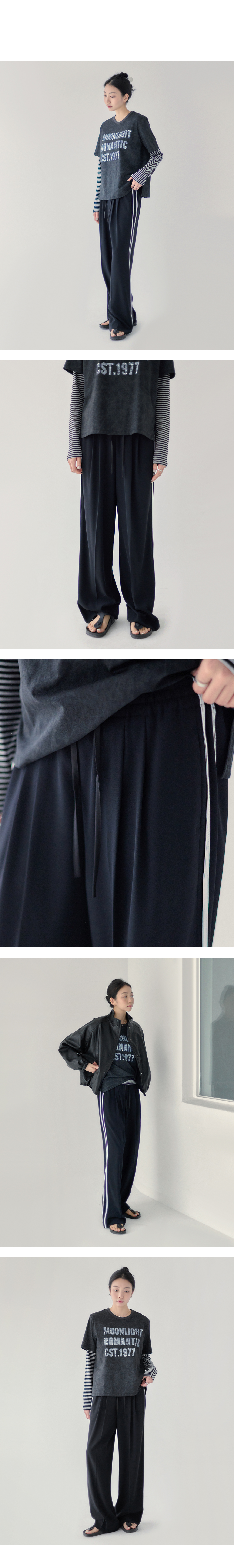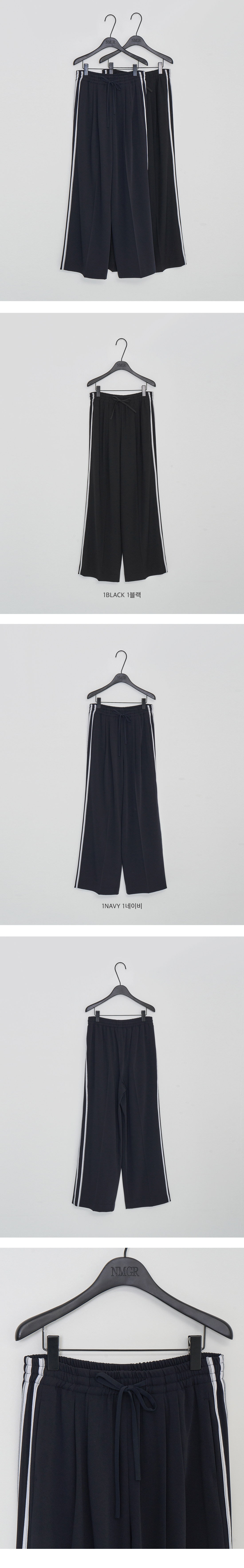 옆선에 들어간 투 라인 배색 디테일은 스포티한 포인트가 되어 자칫 밋밋할 수 있는 슬랙스에 경쾌함을 더했습니다.