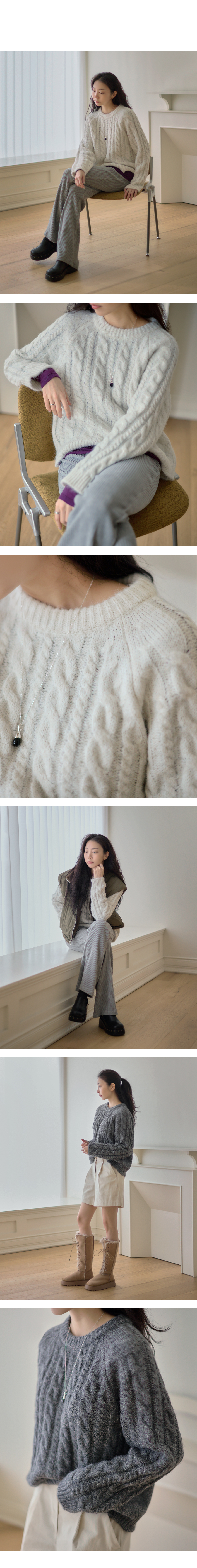 심플하지만 디테일이 살아있는 케이블 니트입니다.