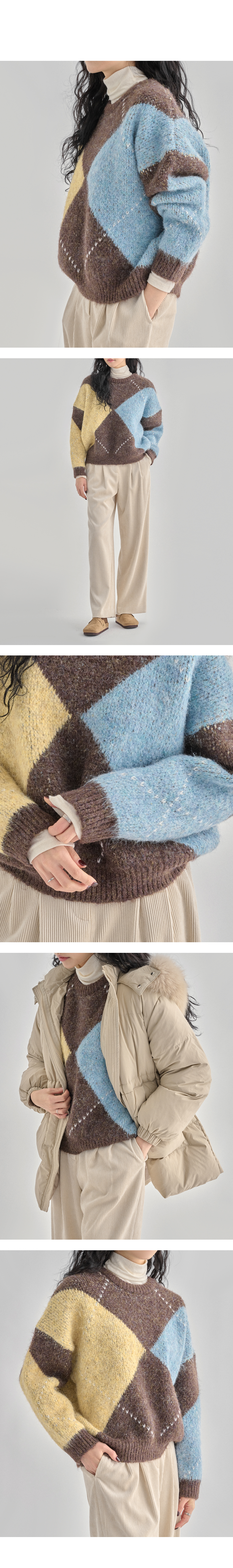 큼지막한 아가일 패턴과 곳곳의 스티치 포인트로 클래식하면서도 유니크한 아이템입니다.