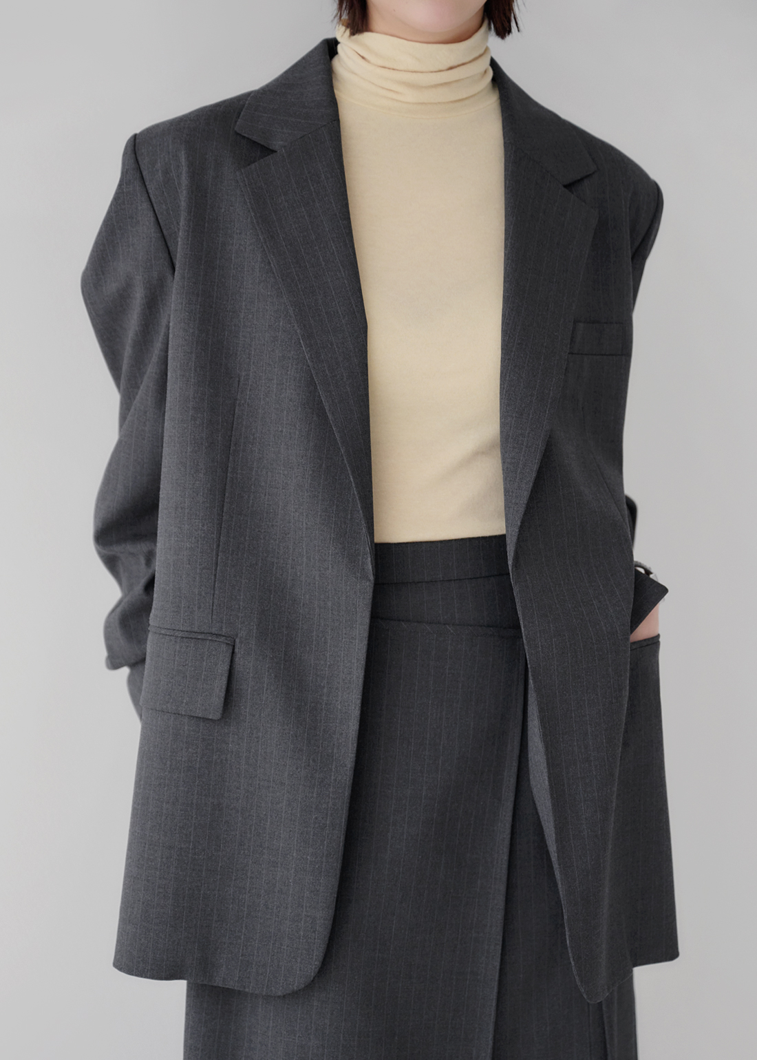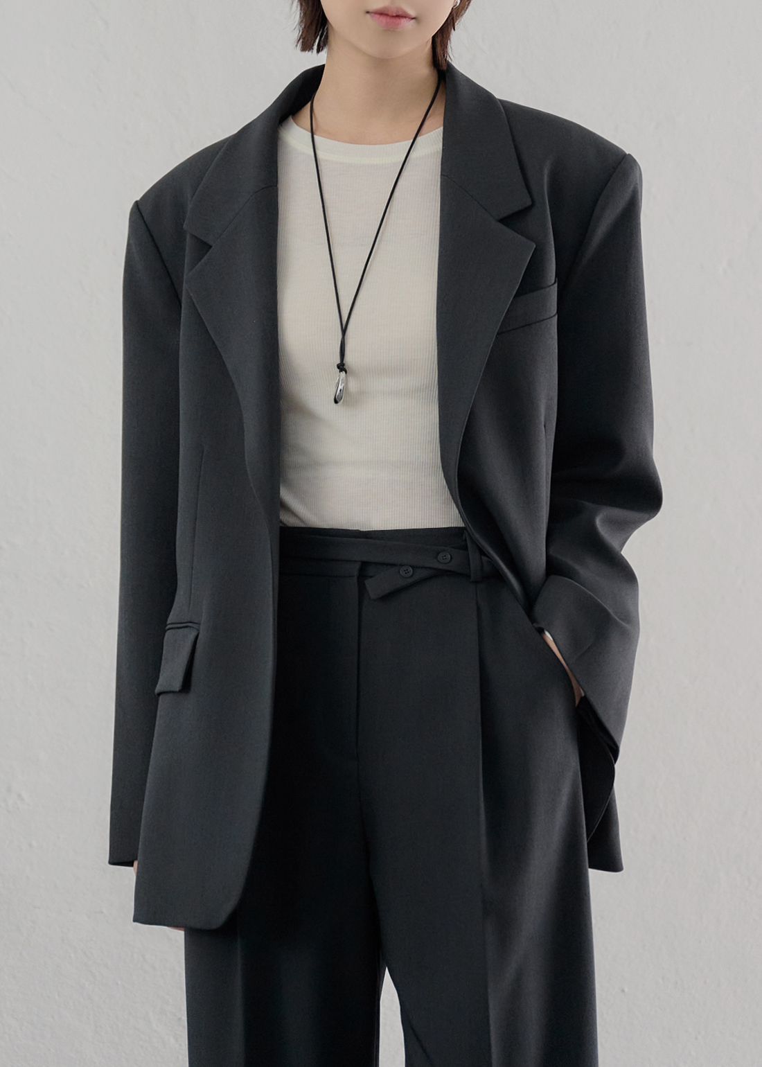 | 소재 | 겉감 : 폴리에스테르 69%, 레이온 29%, 스판 2% / 안감1 : 면 100% / 안감2 : 폴리에스테르 100% |