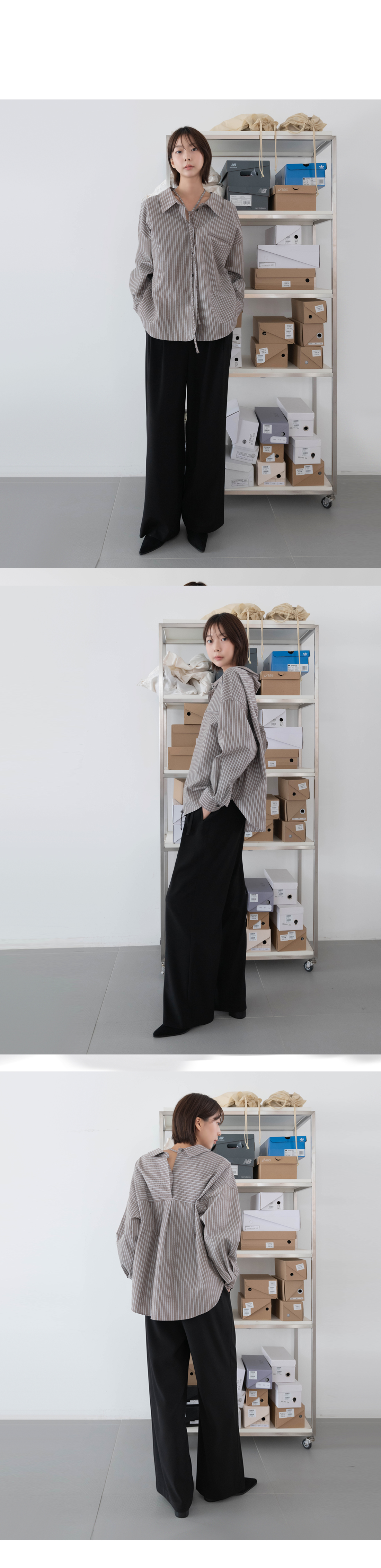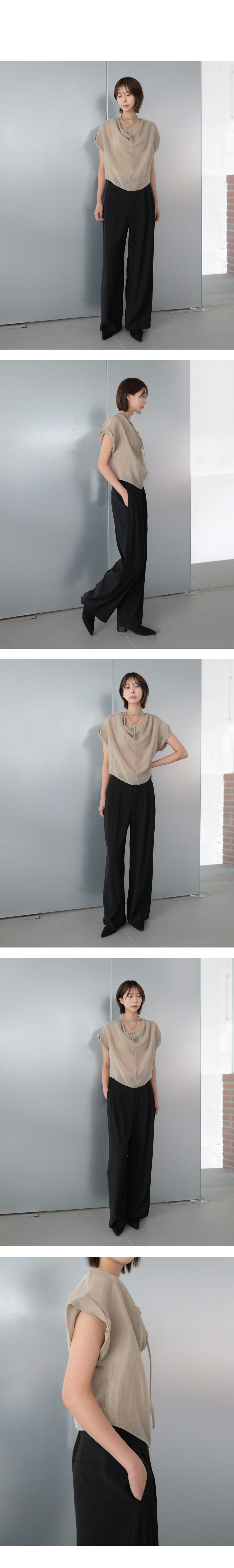 자체제작 팬츠로 와이드한 실루엣을 완성시켜줍니다. 하이웨스트로 레그 라인을 완벽하게 완성시키며, 와이드한 핏에 허리 뒷 밴딩으로 편안하게 착용됩니다.