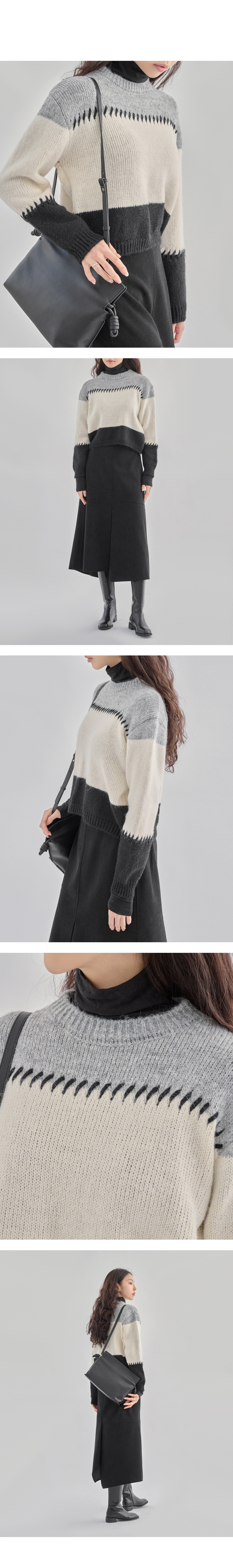 베이직한 컬러 배색에 뜨개 디테일을 더해 센스있는 포인트를 주었습니다.
