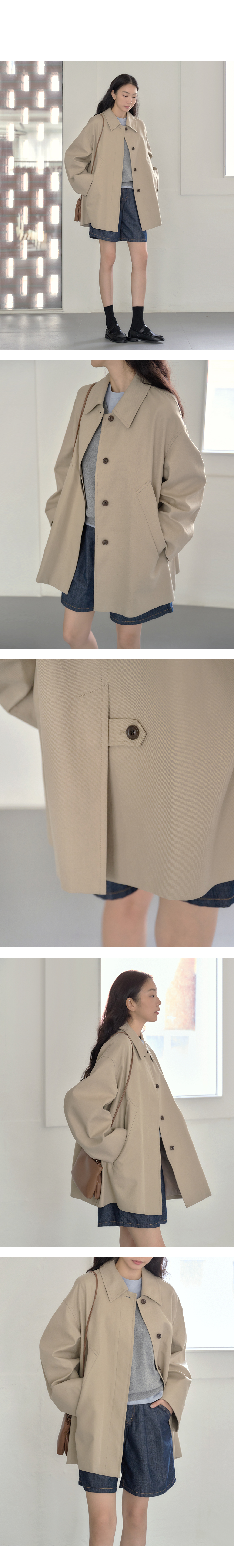 뒷면 밑단 슬릿과 원 버튼 디테일로 포인트를 주었으며 프론트 맨 윗 버튼을 제외한 나머지는 히든 버튼으로 깔끔하게 마무리했습니다.