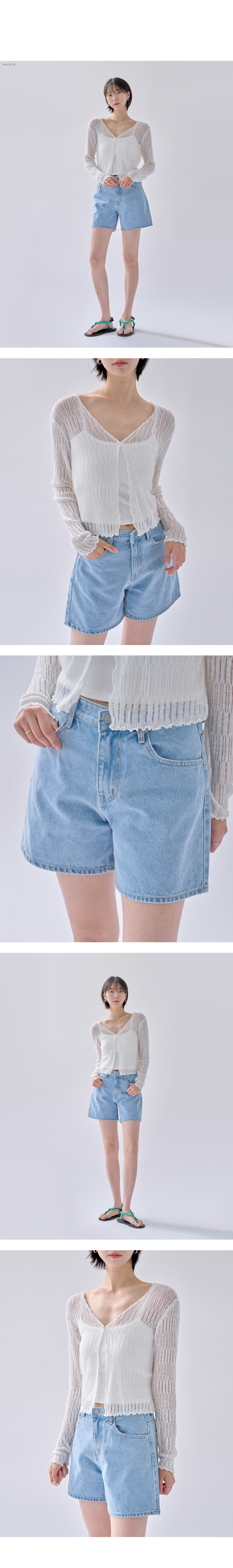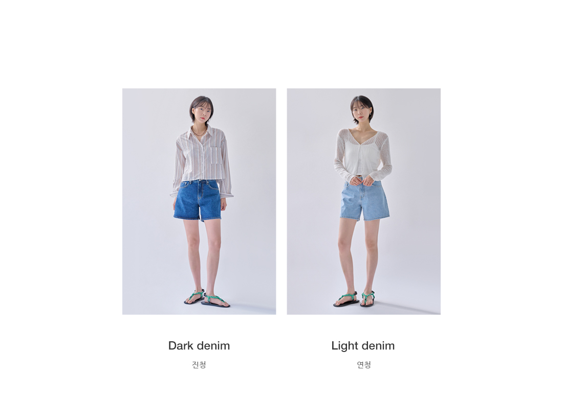 캐주얼한 무드의 스타일링을 연출해주는 데님 쇼츠.