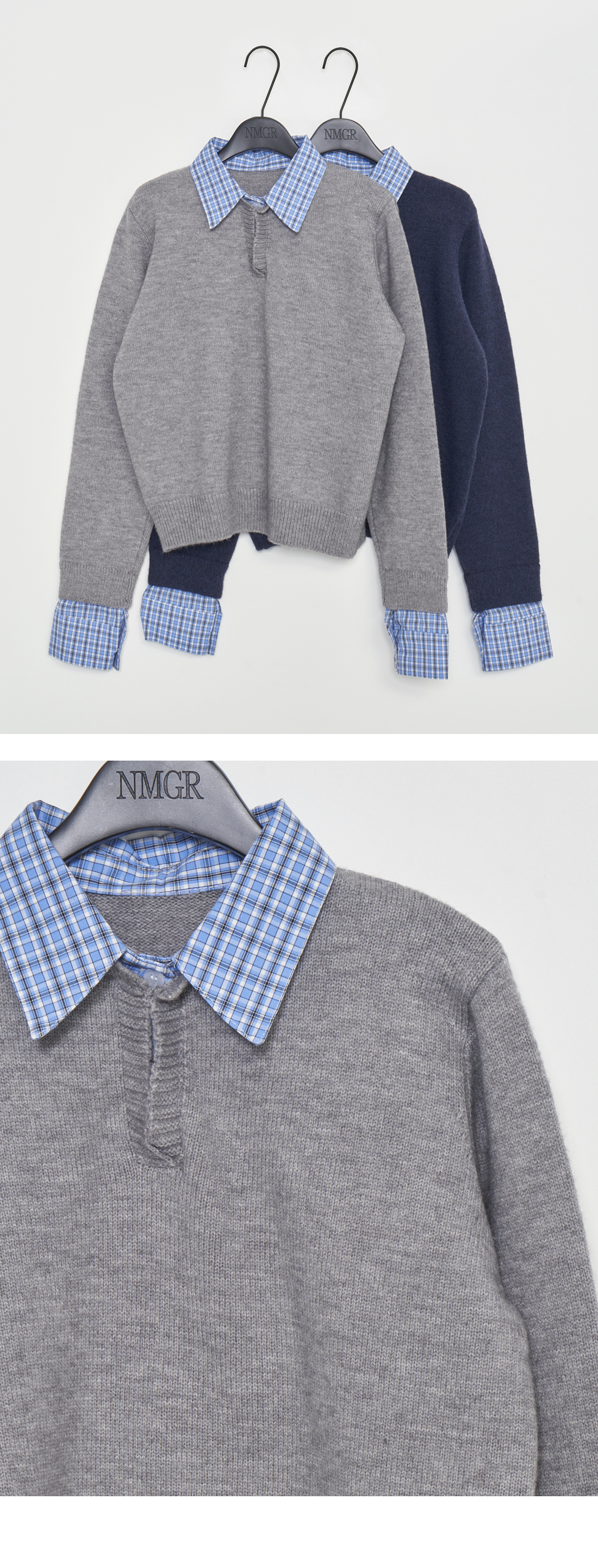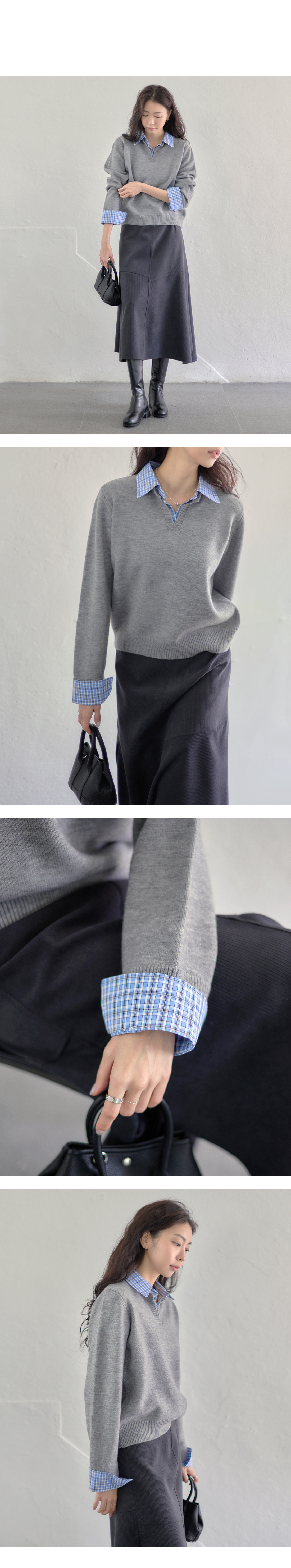단정한 분위기의 셔츠 니트.