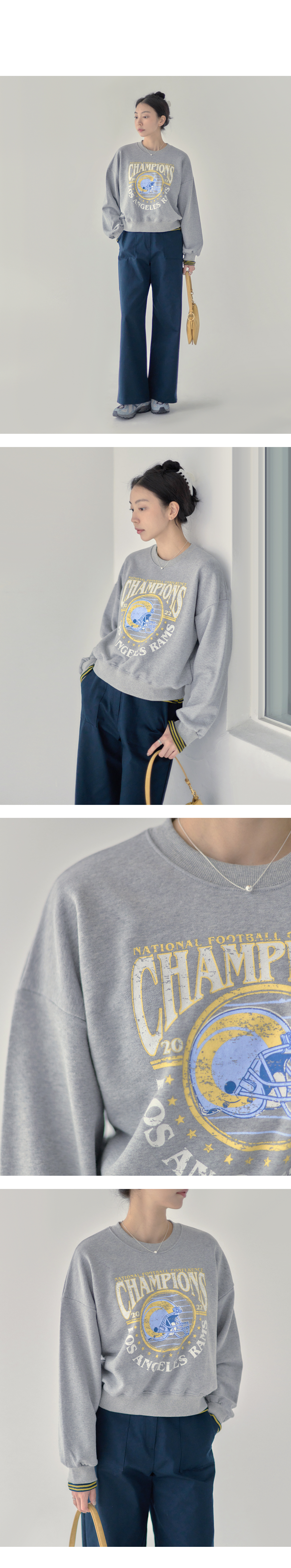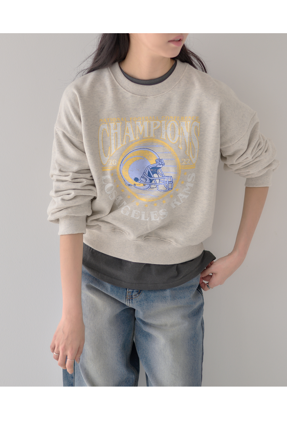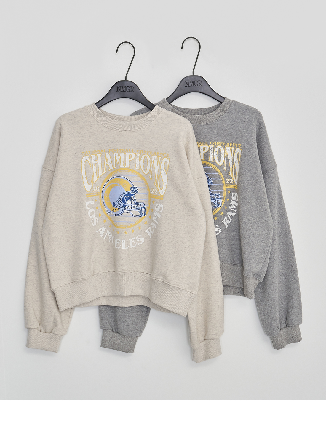 루즈핏의 빈티지 프린팅 맨투맨으로, 전면의 그래픽 레터링이 캐주얼한 포인트가 되어줍니다.