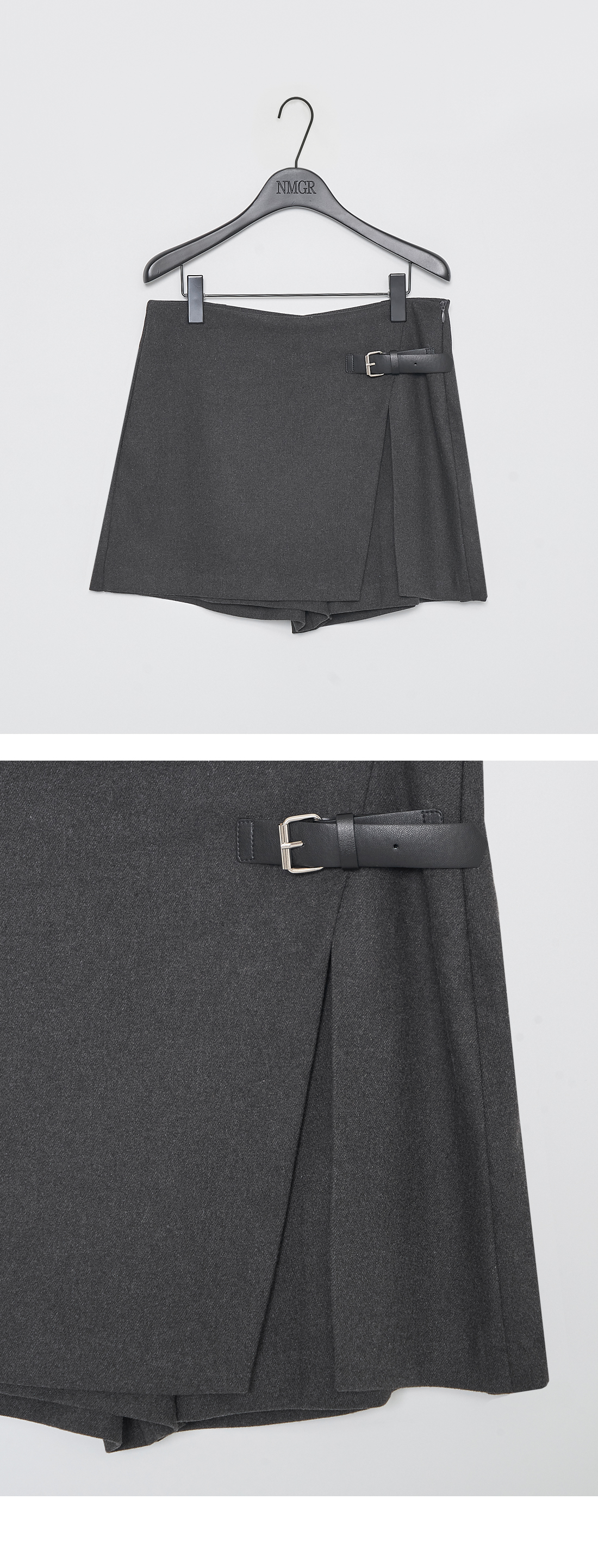 벨트 디테일이 심플한 포인트가 되어주며, 한쪽의 플리츠 라인이 부드러운 입체감을 더합니다.
