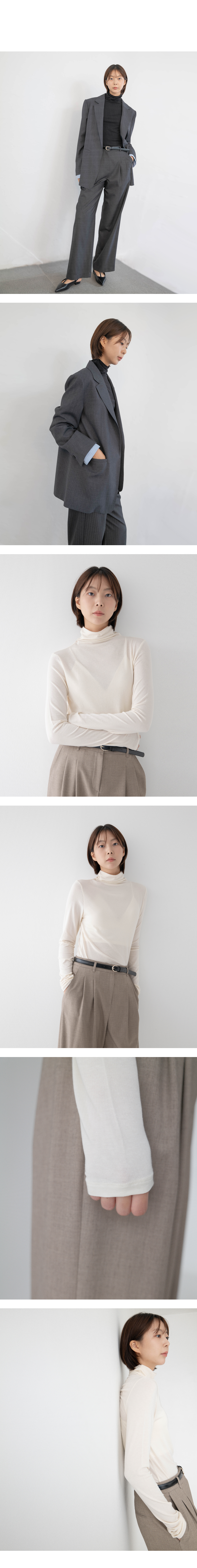 소프트한 슬림핏의 베이직한 컬러감으로 완성된 더나무그림의 시그니쳐 솔리드 터틀넥티.