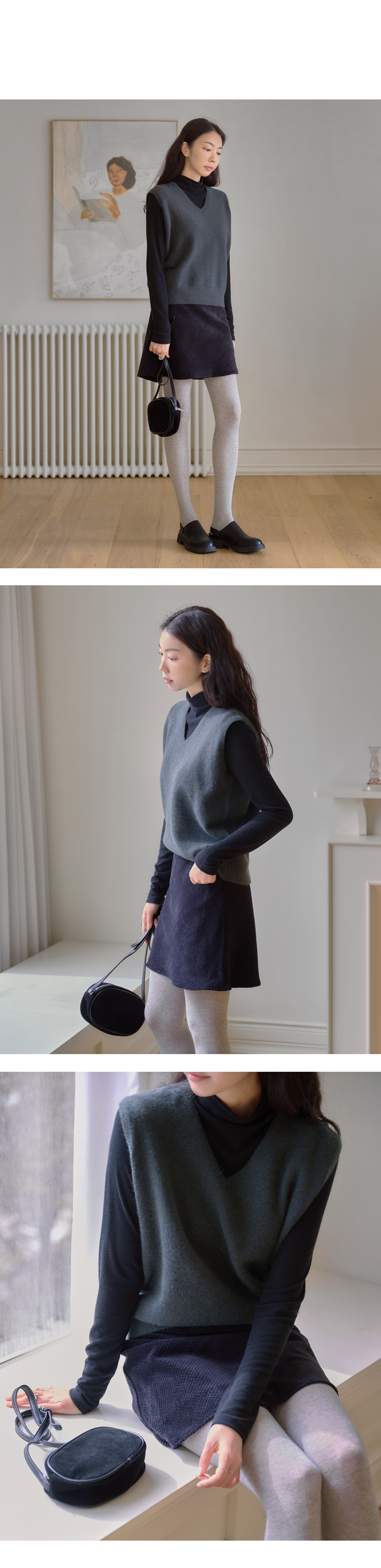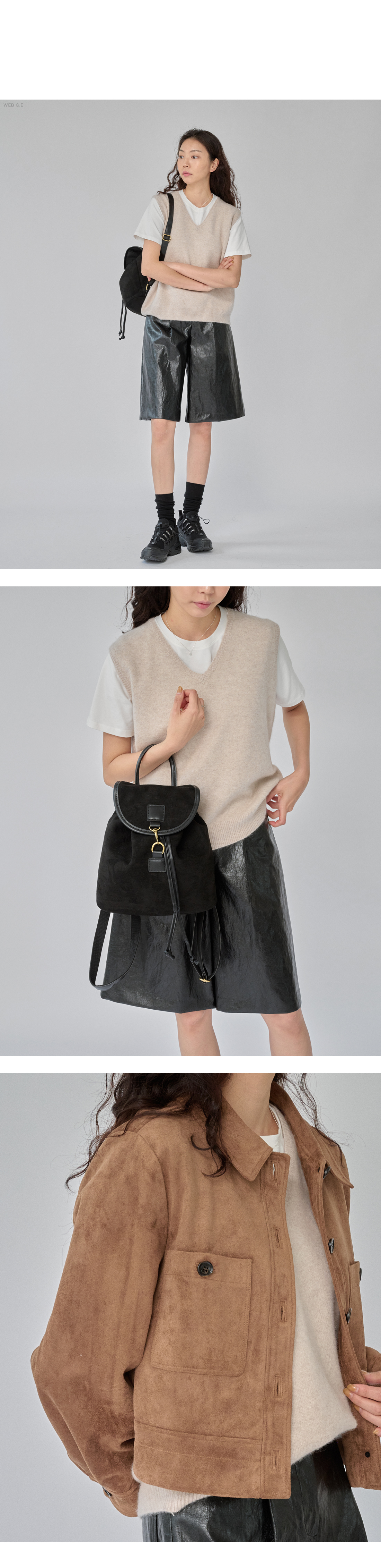 * 크림 색상과 함께 착용한 이너티, 신발들 / 브라운 색상과 함께 착용한 신발 / 그린 색상과 함께 착용한 가방, 신발은 촬영용 샘플입니다.