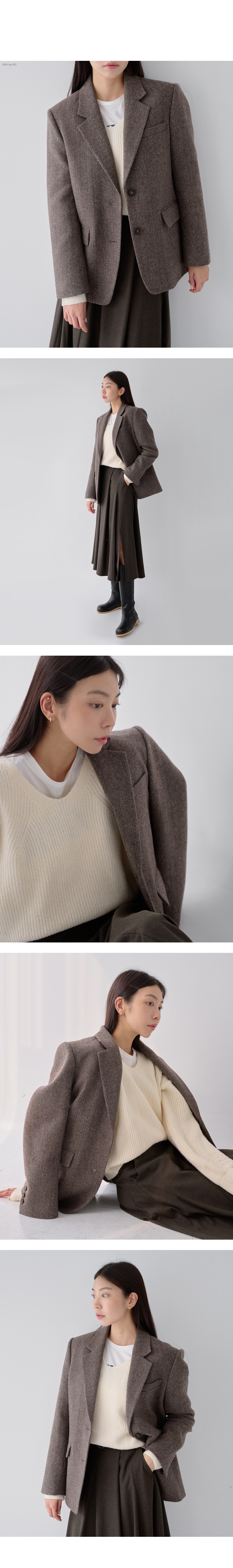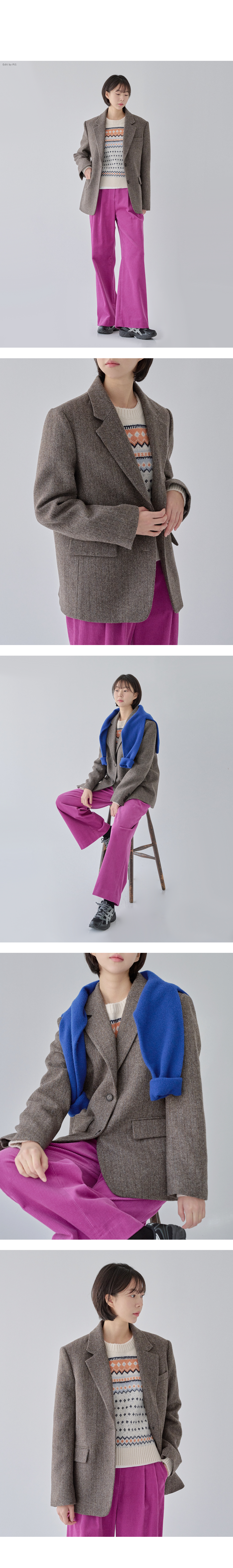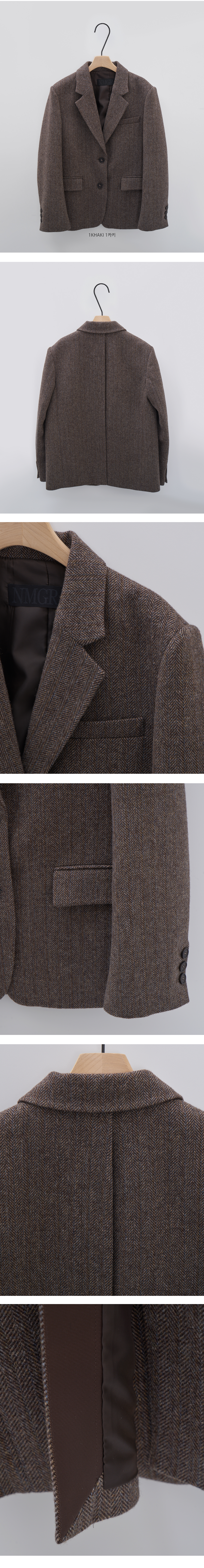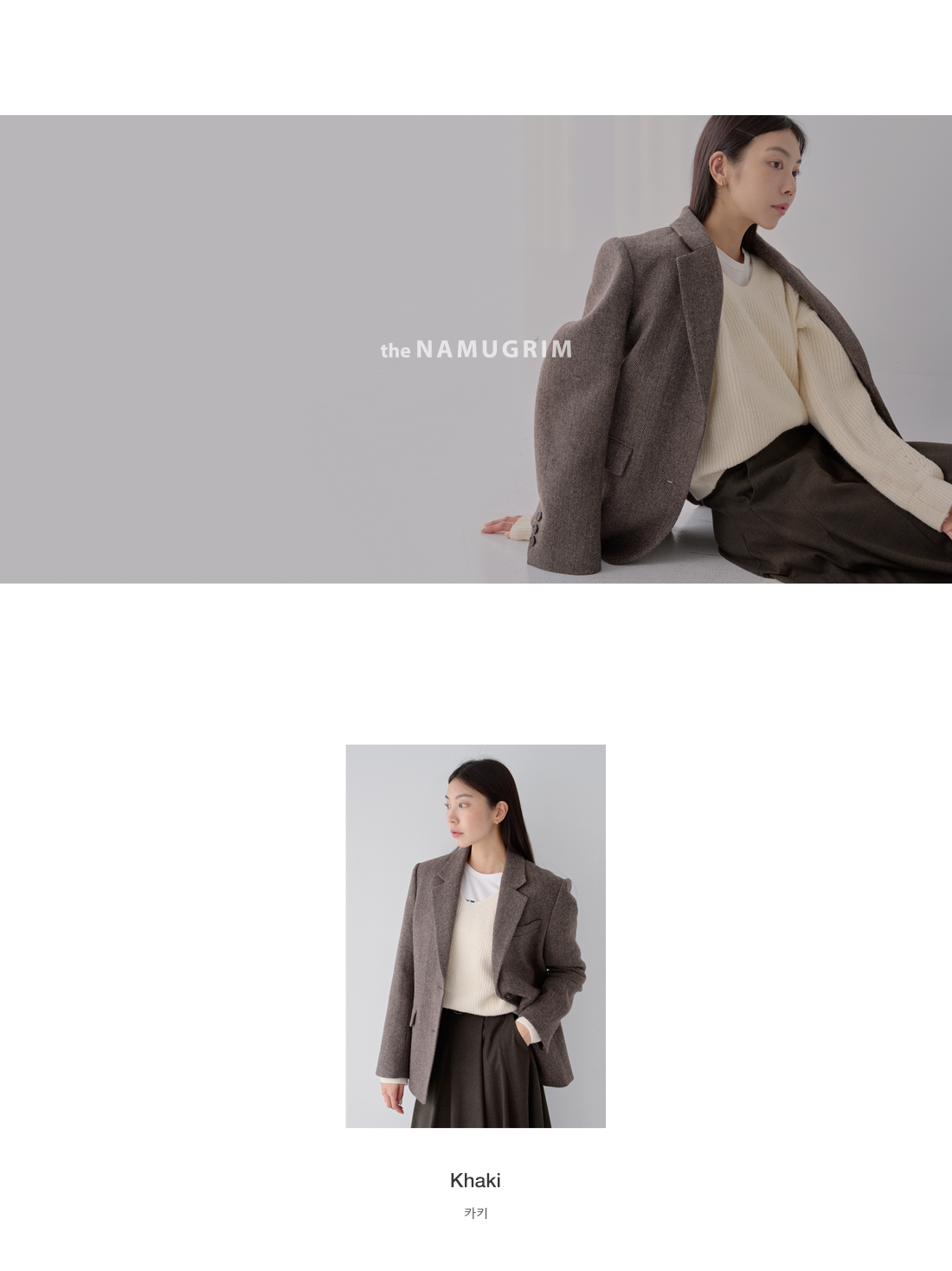 클래식한 무드가 물씬 풍기는 헤링본 패턴의 더나무그림 울 자켓.